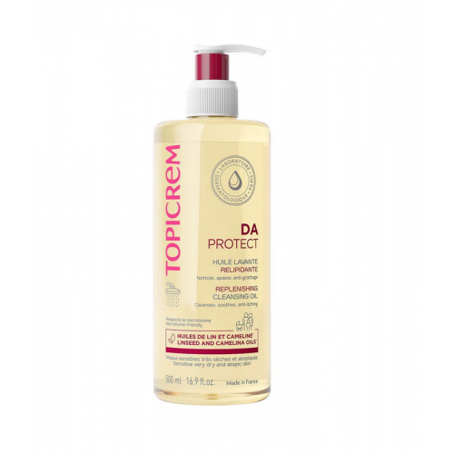 DA PROTECT Replenishing Cleansing Oil je obnavljajuće ulje za tuširanje s nemasnim završnim slojem, razvijeno posebno za atopičnu kožu. Umiruje svrbež i iritaciju, štiti kožnu barijeru, poštuje mikrobiom i vlaži vašu kožu 8 sati. Uđite u područje blagostanja i ugode s našim uljem, kombinirajući učinkovitost i osjetilnost zahvaljujući svojoj bogatoj, kremastoj teksturi i nježnom mirisu.