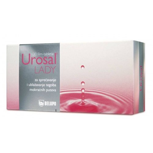 Sastojci u preporučenoj dnevnoj dozi (2 tablete): 800 mg suhog ekstrakta lista medvjetke (Uvae ursi folii extractum siccum), 35 mg suhog ekstrakta zeleni zlatnice (Solidaginis virgaureae herbae extractum siccum), 20 mg suhog ekstrakta korijena koprive (Urticae radicis extractum siccum). NAČIN UPOTREBE: Uzimajte dvije tablete Urosal Lady dva puta na dan (ujutro i navečer) nakon obroka, uz dosta tekućine. Urosal Lady tablete možete primjenjivati do tjedan dana. U slučaju da unatoč primjeni Urosala lady tijekom tjedan dana ne dolazi do poboljšanja simptoma, obratite se Vašem ljekarniku ili liječniku. UPOZORENJE: Ako ste trudnica ili dojilja, nemojte uzimati Urosal lady. Kako bi se osigurala najveća učinkovitost Urosala lady, Vaša mokraća treba biti lužnata, a to se postiže primjenom mliječnih proizvoda te izbjegavanjem citričnog voća (limun, naranča i sl.), rajčice te vitamina C. NAPOMENA: Dodatak prehrani nije nadomjestak ili zamjena uravnoteženoj prehrani. Važno je pridržavati se uravnotežene i raznovrsne prehrane i zdravog načina života! Preporučene dnevne doze ne smiju se prekoračiti. PAKOVANJE: 30 kapsula